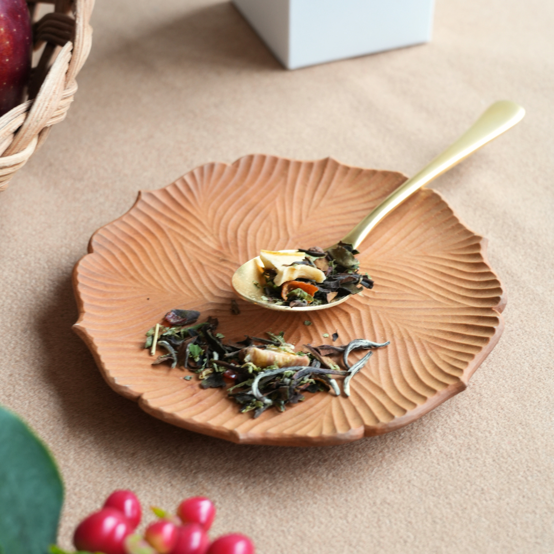 「白茶」という熟成された茶葉をベースに使用。2年の熟成期間を経ているため、葉の味が濃く、注ぎ足していくほどに味がゆっくりと抽出されます。移ろい変化する茶葉の味わいを、ゆっくりと5煎ほどお楽しみください。