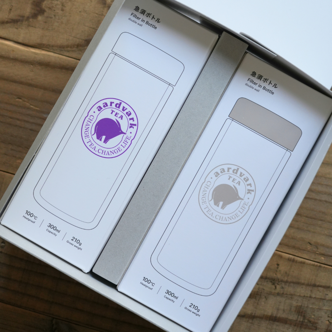 急須ボトル昨日早速使ってみた。ツチブタちゃんのロゴかわいい。軽いのと好きな青紫色なのが嬉しい(高ポイント)耐熱100℃、ダブルウォールなので淹れた後熱くて持てん…てなことがなくて感動。トライタンのフィルターはめるだけで楽。一口目恐る恐る…、あちっ!てなるけど茶葉が出てこず飲めて感動 pic.twitter.com/NXe3iqM3Rl